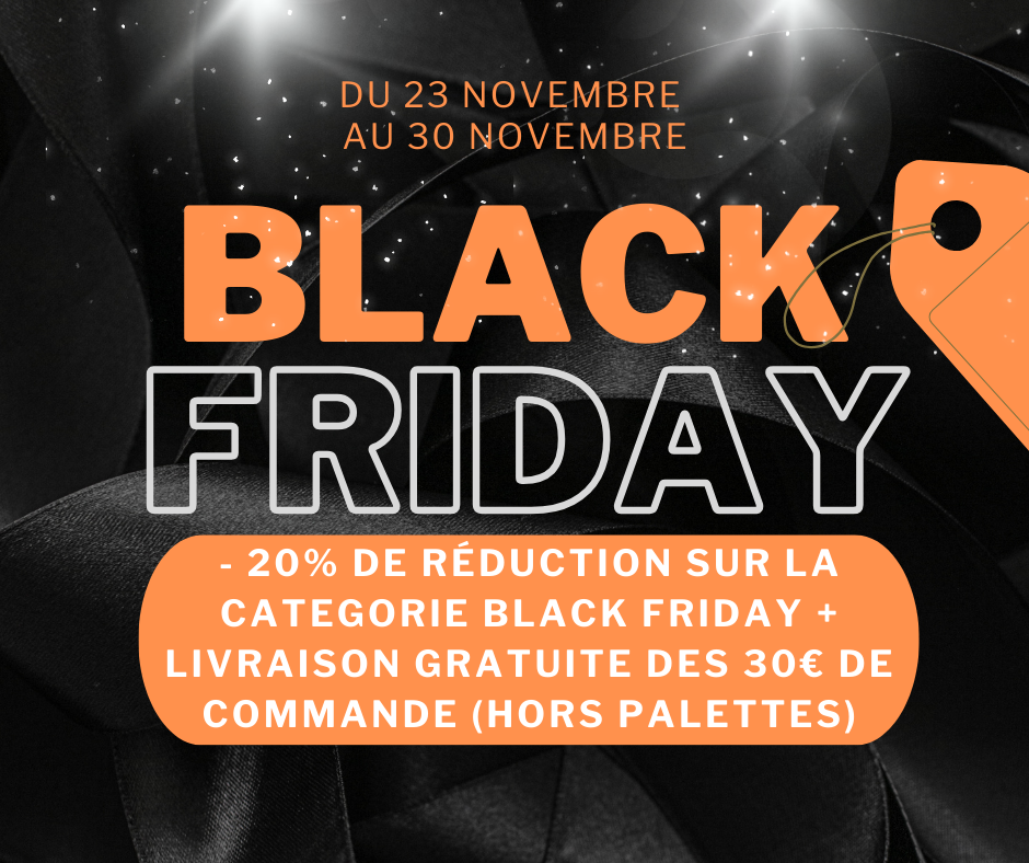DU 23 AU 30 NOVEMBRE 2025 PROFITER DE -20% SUR LES ARTICLES DE LA CATEGORIE BLACK FRIDAY AINSI DE DE LA LIVRAISON GRATUITE DES 30€ D'ACHAT (LIVRAISON GRATUITE DES 30€ POUR LA FRANCE ET BELGIQUE SEULEMENT)