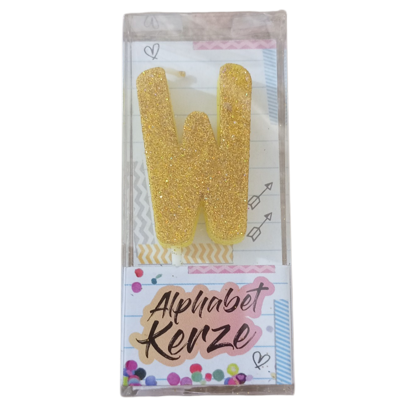 Bougie d’anniversaire alphabet lettre W à paillettes
