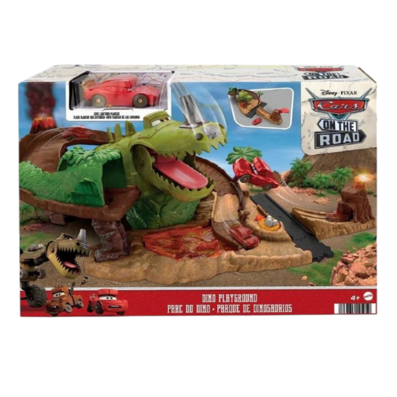 Le coffret inclut au moins un véhicule Cars, des éléments inspirés du parc des dinosaures, des dinosaures miniatures, des roches, des arbres et de nombreux accessoires pour recréer des scènes de jeu captivantes. Grâce au propulseur intégré, la voiture prend de la vitesse pour traverser le circuit, mais attention : il faudra éviter de se faire attraper par le crocodile redoutable !